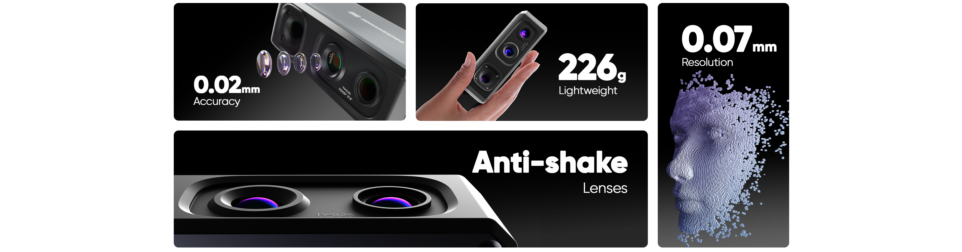 Mit seiner kürzeren Wellenlänge (400 bis 500 Nano) projiziert es verfeinertes strukturiertes Licht und erreicht eine Genauigkeit von 0,02mm.