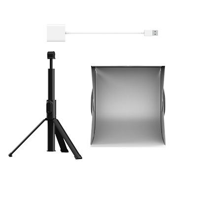 Il se compose d’un contrôleur de caméra blanc, d’un caisson lumineux et de quelques câbles de connexion.