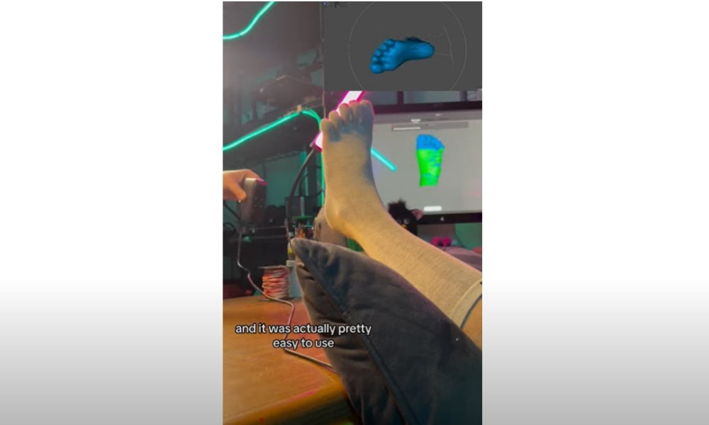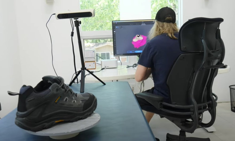 Bekijk hoe deze man zijn voeten scant en een schoenzool op maat maakt die perfect past! Moose 3D-scanner