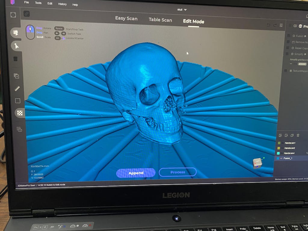 JMStudio supports exporting files in formats like OBJ, STL, ASC, empowering you to edit, refine, render, or print your scans using your preferred design software.